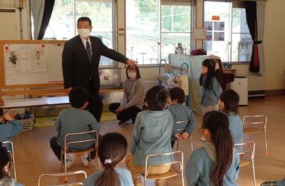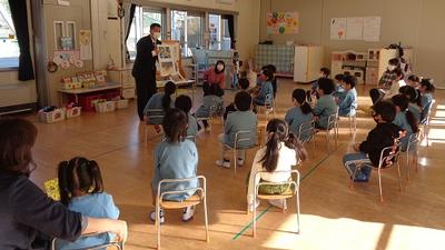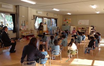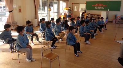 午前10時から第2学期の終業式が行われました。全員が参加して実施することができました。まず、園長先生のお話がありました。2学期に頑張ってきたことや冬休みに気をつけることについてのお話でした。子どもたちは真剣に聞いていました。その後、担任から冬休みの注意点について話がありました。「早寝・早起き・朝ご飯」「外出の時はマスク着用」「あいさつ」「後始末」などについてイラストを交えて話がありました。湯本一幼のみなさん、よいお年をお迎えください。保護者の皆さま、ご理解とご協力をありがとうございました。
