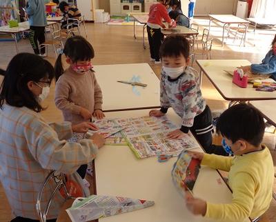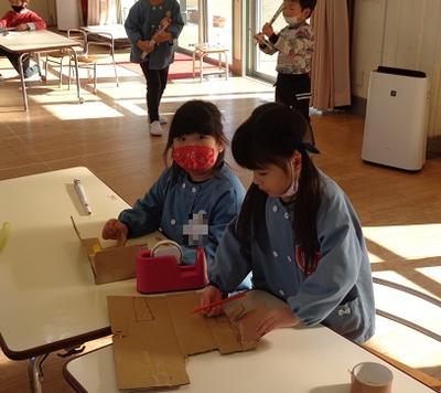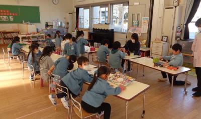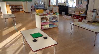 昨日、ネット接続がうまくいかなかったため、HPが更新できませんでした。すみませんでした。昨日の様子ですがお知らせいたします。昨日の朝の様子です。子どもたちが登園したらすぐに自由遊びに入れるように準備されていました。手作り双六、空き箱などが机の上にあったり、そばには使用する道具などがきちんと揃えられていました。スケジュール表も準備万端でした。