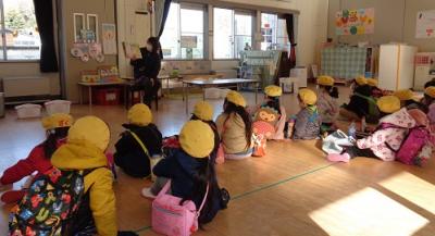 昨日の降園前の様子です。子どもたちは降園の準備をしたあと、読み聞かせをしてもらっていました。読み聞かせなどで本に親しむことは子どもの想像力・創造力・相手意識を高めるためにも効果的です。できるだけ本園でも読み聞かせを多くしていきたいと考えています。