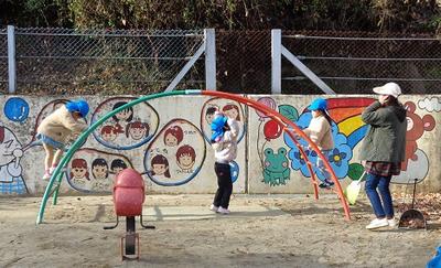 みんなの遊びをミラーマンが見守っています。