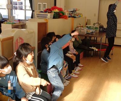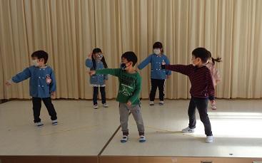 今日、子どもたちは生活発表会で披露したダンスを教え合っていました。下の写真は、ほし組男子が演技した「龍神祭り」をばら組さんに教えている様子です。また、その下の写真は、ばら組男子が演技した「ぼくらは小さな海賊だ」をばら組の女子に教えている様子です。教え合って子どもは成長していくのですね。