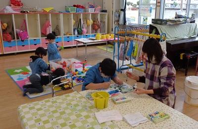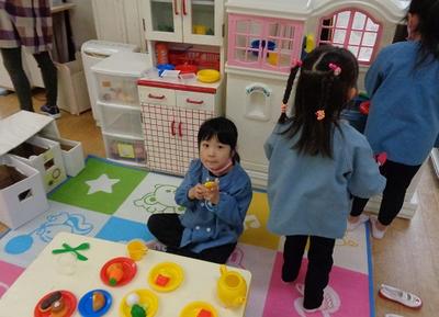 今日も子どもたちは元気に登園をしました。朝の準備をした子どもたちは、部屋内で自由遊びをしました。料理遊びをしたり、ブロックで遊んだりと子どもたちは友だちと楽しそうに活動しました。