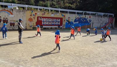 12日(木)のことです。昨日、サッカー教室が講師を招いて行われました。ばら組のあとにほし組が行いました。子どもたちは、ドリブルをしたり、足でとめたりしながらたくさんサッカーボールに親しみました。最後には、講師の方と記念写真を撮りました。