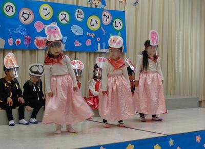 年長さんらしい素晴らしい演技でした。なにより休みなく全員が元気にステージに立って演じることができてよかったと思います。保護者の皆さま、今まで何かとご協力をいただきまして誠にありがとうございました。