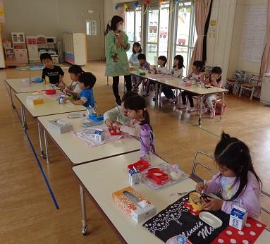 今日は、お弁当でした。子どもたちは美味しそうに食べていました。保護者の皆さま、ありがとうございます。