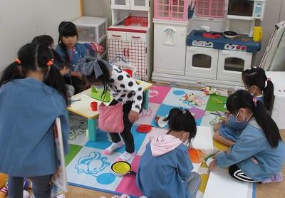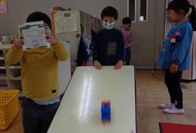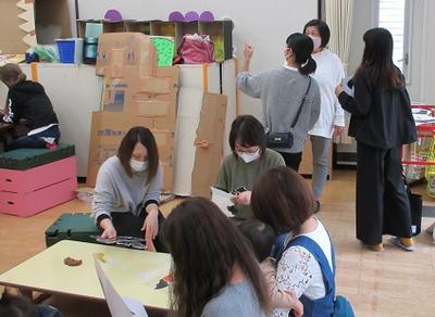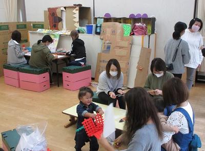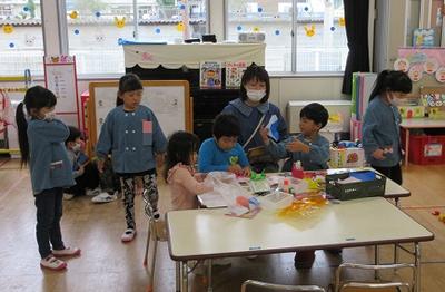 子どもたちは、製作活動に取り組んでいました。子どもたちの発想には驚かされます。ブロックや空き箱を使って、上手に作品を仕上げていました。