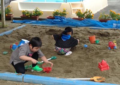 実りの秋を象徴する「いもほり」が行われました。いもほりの様子は後ほどホームページでお知らせいたします。いもほりを終えた子どもたちは、思い思いに自由遊びを行いました。