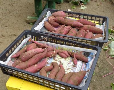 数は少なかったのですが、形のよい大きないもがとれました。自由遊びをした後、子どもたちは、芋掘りの体験を忘れないうちに園舎に戻っておいもの絵をかきました。上手な絵が仕上がりそうです。