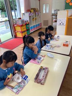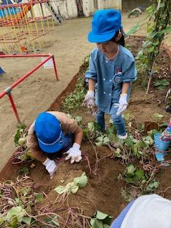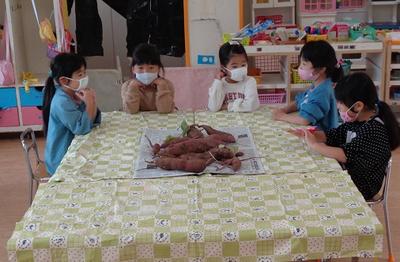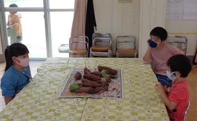 みんなで収穫したサツマイモの試食もしました。食べる前は、苦手…と言っていた子も、みんなと一緒に食べてみると「おいしい!!」とパクパク食べることができました。楽しい芋掘りでしたね。