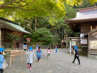 神社の境内では、おやつタイムを楽しんだり、イチョウの葉を拾ったりと楽しい時間を過ごしてきました。