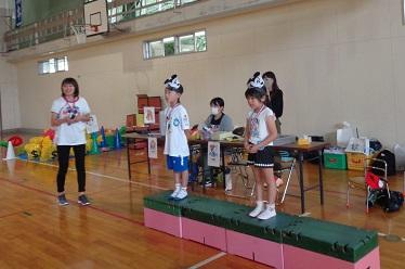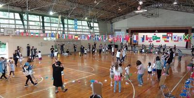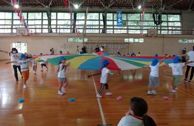 運動会が湯本一中の体育館で行われました。保護者の方々に運動会の用具を運んでいただき準備をしました。下の写真は開会式とバルーンの様子です。子どもたちは真剣の中にも楽しそうに運動会に参加しました。