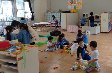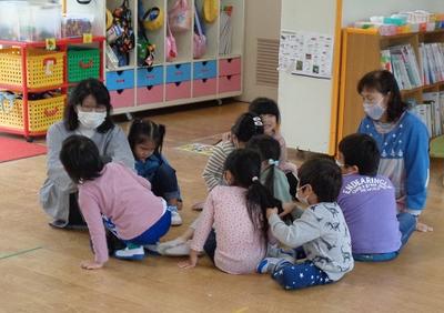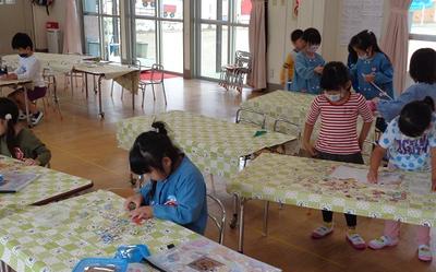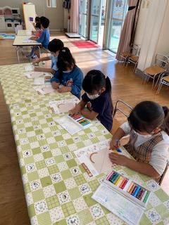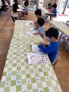 園庭で体操や鬼ごっこを楽しんだ後、ばら組は製作遊びを楽しみました。