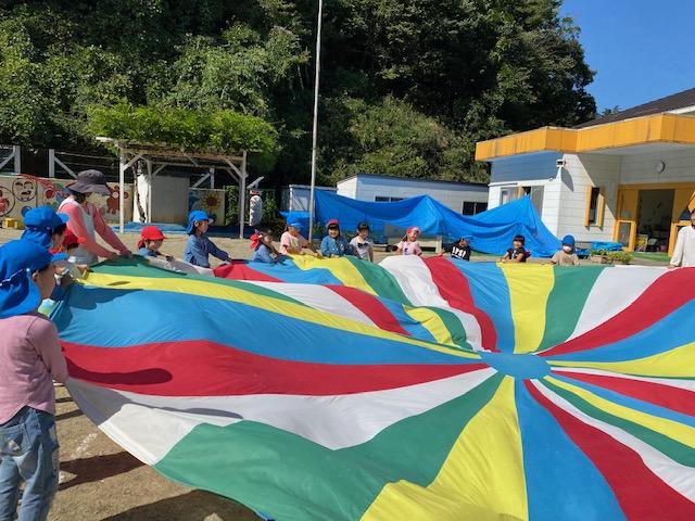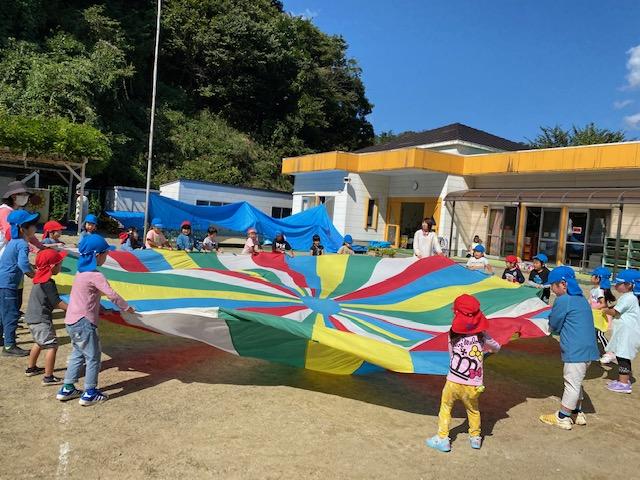 とても心地よい秋空の下、運動会で楽しんだリレーやバルーン遊びを楽しみました。今日は、ばら組さんもほし組さんに教えてもらいながら、バルーンを一緒に楽しみました。「ほし組さんになったらできるの楽しみ!」と今から来年の運動会を楽しみにする声も聞こえました。