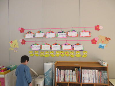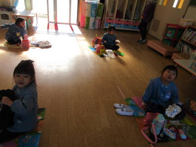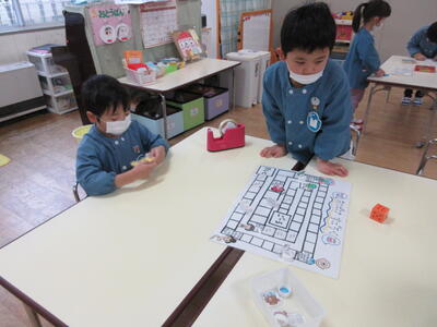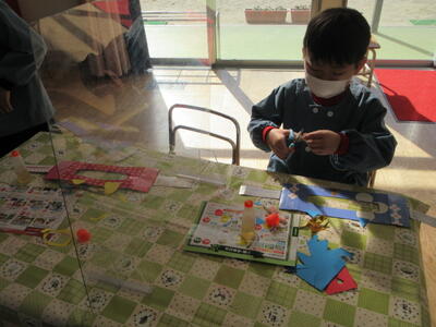 保育室に入ると、早速冬休みの出来事を先生や友達に伝えたり、お正月遊びを楽しんだりする姿が見られました。