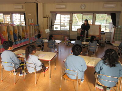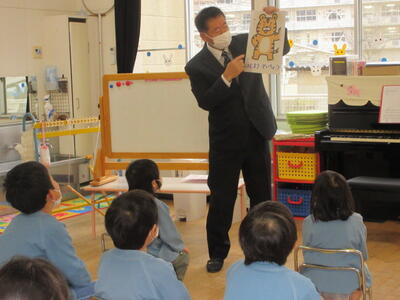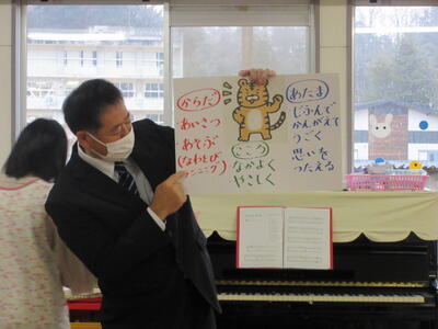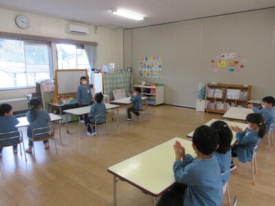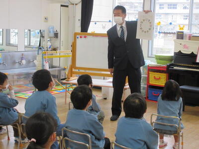 園長先生の話を真剣に聞き、大きな返事をしていました。3学期、みんなで挑戦していきましょうね。