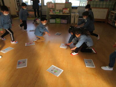 昨日作ったカルタでカルタ遊びにも取り組んでいました。