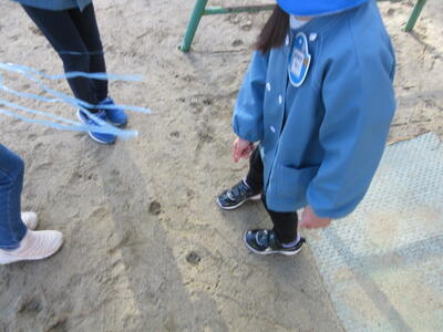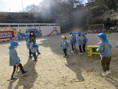 凧揚げ遊びの後は、ほし組とひよこ組で「しっぽ取りゲーム」を楽しみました。