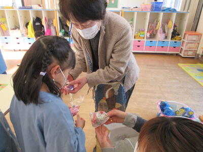 可愛いちりめん細工のお人形や、キーホルダーをいただきて子どもたちは大喜びでした。