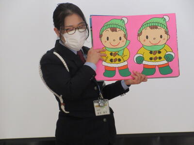 「この二人のお友達、どっちが安全かな?」「左!」「そうだね。どこが危ないかな?」