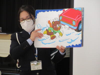 今日は、今年度最後の交通教室があり、一年間の振り返りと、冬の防寒着の使用の仕方などを教えていただきました。