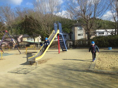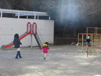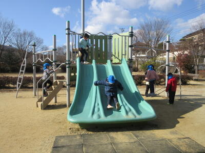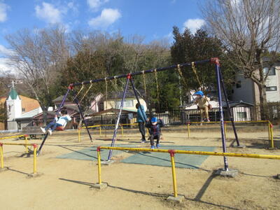 いつもとは違う遊具にみんなで挑戦したり、全園児で思いっきり鬼ごっこをしたりして楽しみました。