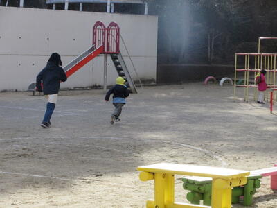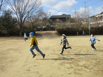 今日も元気に鬼ごっこをしたり、凧揚げをしたりして元気に遊んでいました。