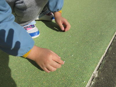 ひよこ組さんは、ほし組さんに「だるまさんころんだ」を教えてもらいながら、一緒に集団遊びを楽しんでいました。