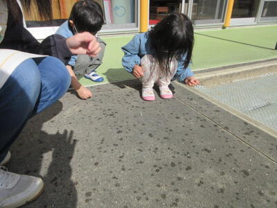 ひよこ組は、園庭を広々と使って、「だるまさんがころんだ」をして遊んでいました。