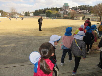 今年度の幼稚園生活も残すところ、あと33日となり、全園児で思い出遠足に出かけました。行先は、ガニラ公園。 交通ルールを確認しながら、みんなで歩いていきました。