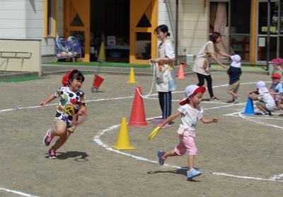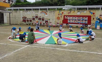 運動会の練習が行われました。ほし組さんとばら組さんに分かれて練習をしていました。リレーの練習をした後には、バルーンの練習も行いました。
