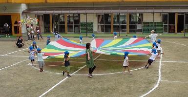運動会の予行練習が行われました。太陽の中にも曇り空みられる絶好の天候でした。保護者の方々の協力を得ながら予定通りの練習ができました。保護者の皆さま、ありがとうございました。下の写真は、バルーンの演技風景です。