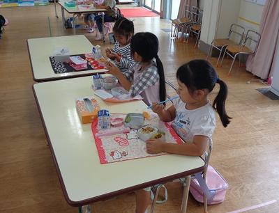 下の写真はお弁当の様子です。子どもたちは美味しそうに食べていました。