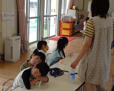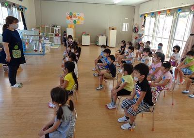 今日からいよいよ2学期がスタートしました。24名全員が休むことなく登園できました。園長先生からは「元気に遊ぶ」「友だちへやさしくする」「考えて行動する」の3つのお話がありました。その後、先生方から2学期に行う行事について説明がありました。お話の聞き方が上手で驚きました。短い夏休みでしたが、子どもたちはしっかり成長していました。