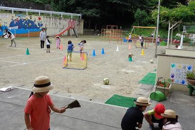 今日は、1学期最後の日です。天気もよかったので園庭で遊びました。