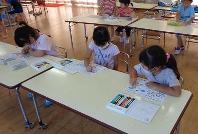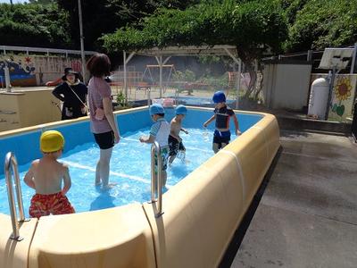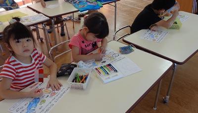 昨日の活動の様子です。昨日は、水遊びとお絵かきをしました。子どもたちは楽しそうに活動していました。