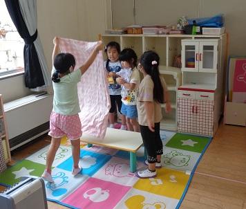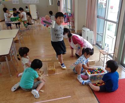 いままでと比べると過ごしやすい天気になりました。子どもたちは元気に登園しました。下の写真は、昼食後の自由活動の様子です。子どもたちは思い思いに活動を楽しんでいました。