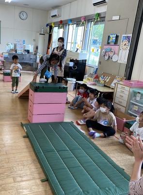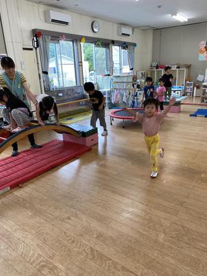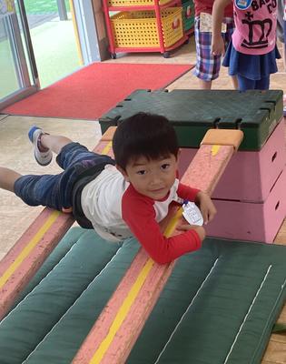 友だちの姿に刺激を受け、色々な動きにチャレンジして楽しんでいます。