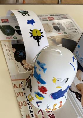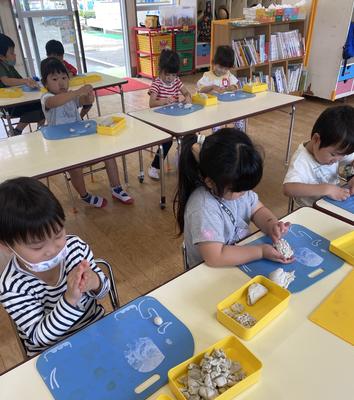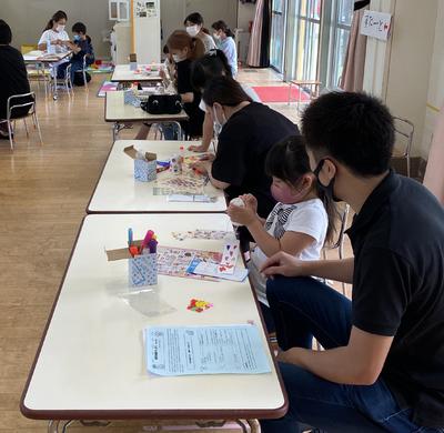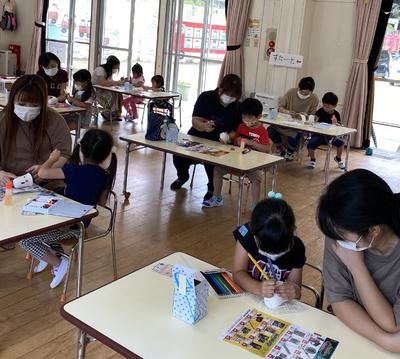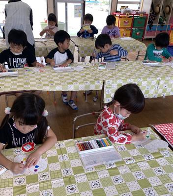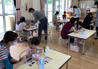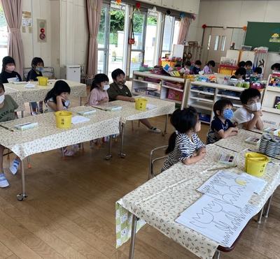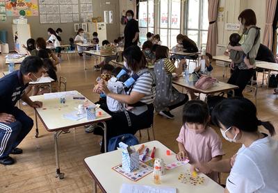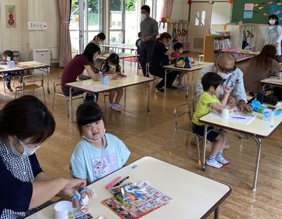 新型コロナウィルス感染症予防のため、学年ごと入れ替えの保育参観となりましたが、子どもたちはおうちの人と一緒に風鈴作りをすることを楽しんでいましたね