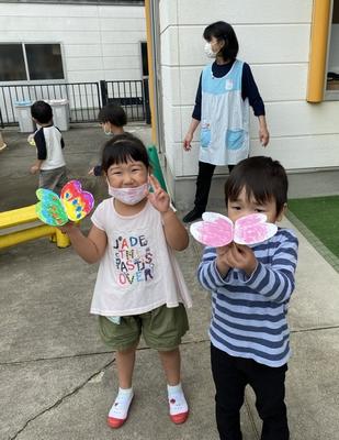 ばら組は製作あそびで、ちょうちょを作りました。