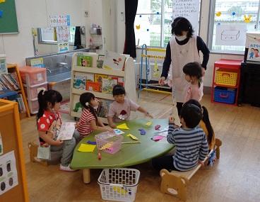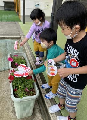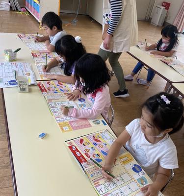 ほし組さんは、絵の具でチューリップをかいた作品に草をクレヨンでかきました。はみ出さないで上手にかけたので感心しました。ばら組さんは、製作活動でお弁当箱を紙で作りました。どちらの子どもたちも真剣に取り組んでいました。
