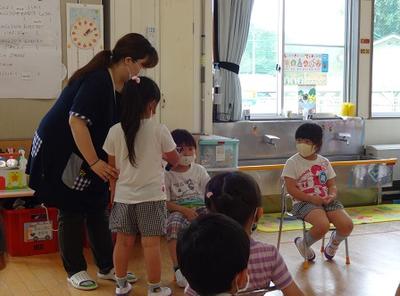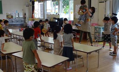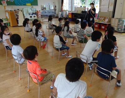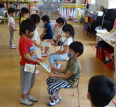 7月7日(火)に7月の誕生会が行われました。先生のお話を聞いたあとに、インタビューや歌が歌われました。短い時間でしたが楽しいひとときになりました。
