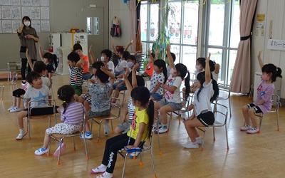 お誕生日会のあと、七夕の会が行われました。ブラックシアターで七夕の由来について学んだあとにいくつかのクイズが出されました。子どもたちは意欲的に参加していました。