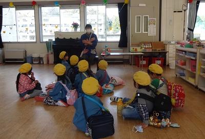 今日の降園前の様子です。園児たちは、先生の出したクイズに楽しそうに答えていました。