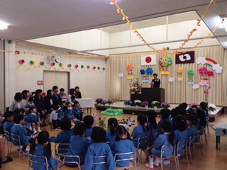 入園式には、新入生1名とほし組・ばら組23名が出席しました。