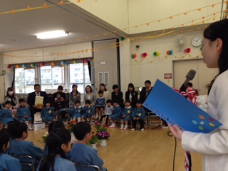 入園式後に、教務主任から今後の保育活動について説明がありました。