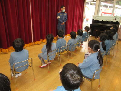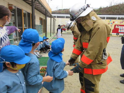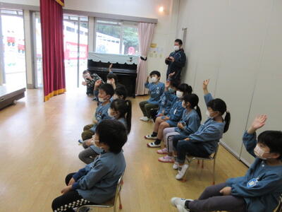 「おうちが燃えてしまうと、寝るところも大事なおもちゃもみんな無くなってしまうよね。みんなも火遊びは絶対しないって約束してくれるかな?」「はい!」