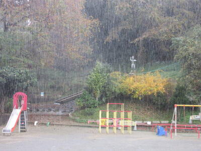雨上がりの不思議な自然現象に興味津々な子どもたちでした。