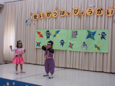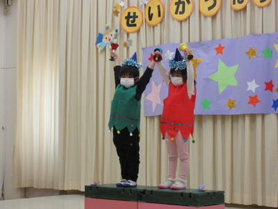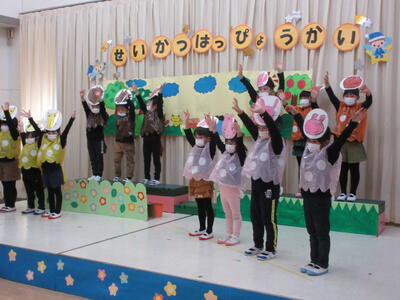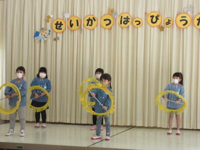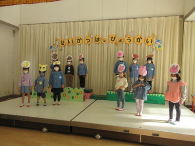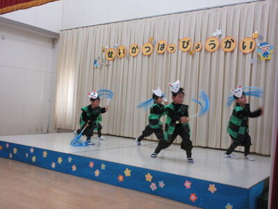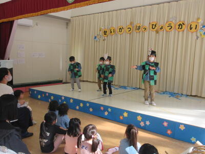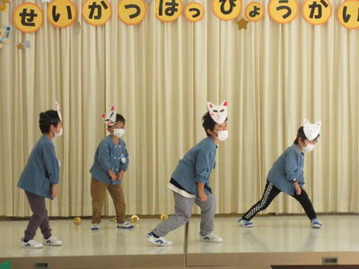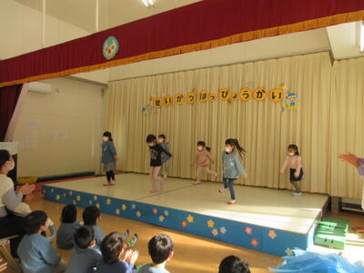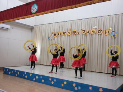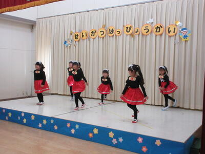 一人一人が自信をもって表現することを楽しめるように、またクラスとして、園全体として一つの目標に向かって取り組んでいく楽しさややり遂げる達成感が味わえるようにという先生の思いや、子どもたちの取り組みの様子がそれぞれの演目でみられ、保護者の方の手拍子やたくさんの拍手を受けながら一人一人が輝く素敵な発表会になりました。