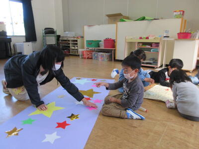 ほし組は、一年間を通して受付の係に積極的に取り組んでくれました。ひよこ組は、自分よりも小さいお友達が来てくれることで、お兄さん、お姉さんとして張り切る姿が見られ、とても良い経験をすることができました。今までご来園いただいた地域の皆様、ありがとうございました。