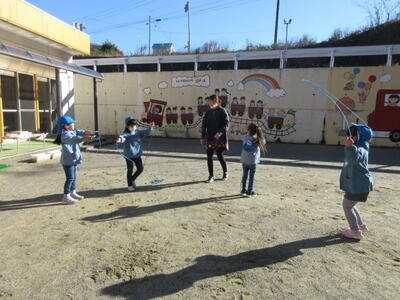 今日は、湯本第一幼稚園最後のみゅう広場がありました。寒さに負けず、戸外遊びや発表会ごっこを未就園児のお友達と楽しみましたよ。